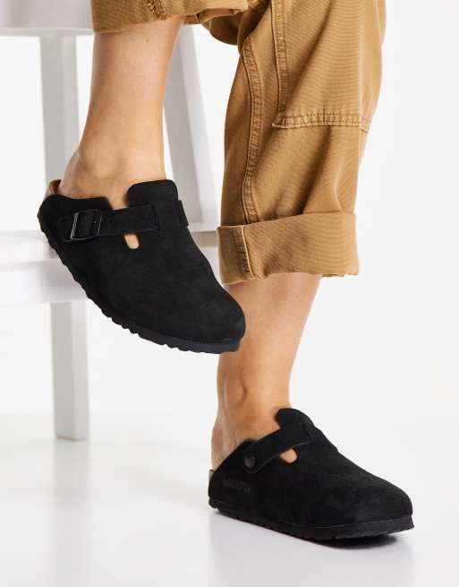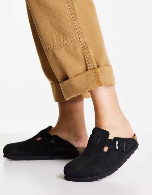 Birkenstock Boston Suede Shearling Clog Regular Width Black Cleary S Shoes Boots